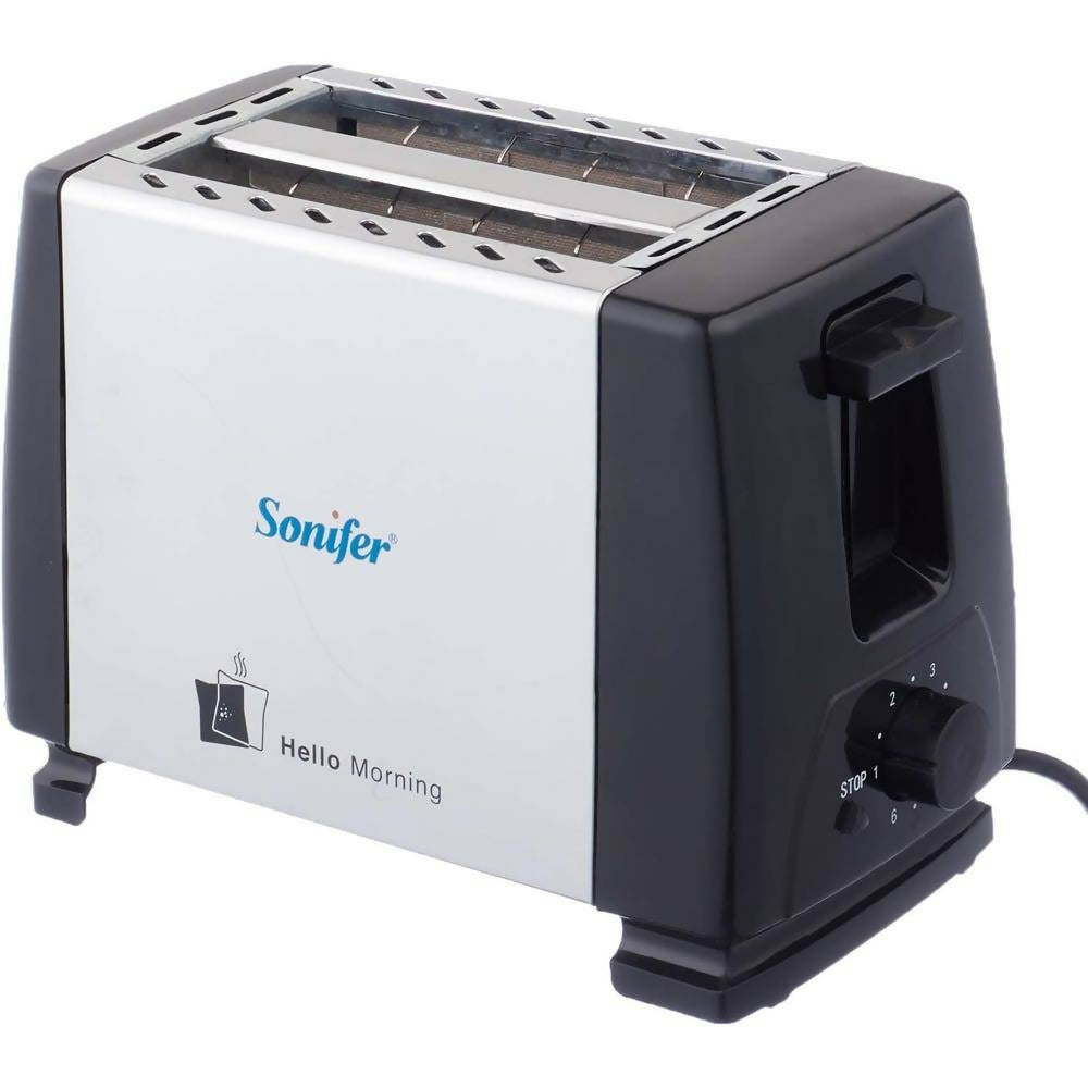 Start your mornings with perfectly golden toast using Sonifer Electric Toaster. Designed with a sleek black and silver finish, this toaster combines modern style with everyday practicality. With a 700-watt power output, it ensures fast and even toasting for your favorite breads, bagels, or sandwiches.